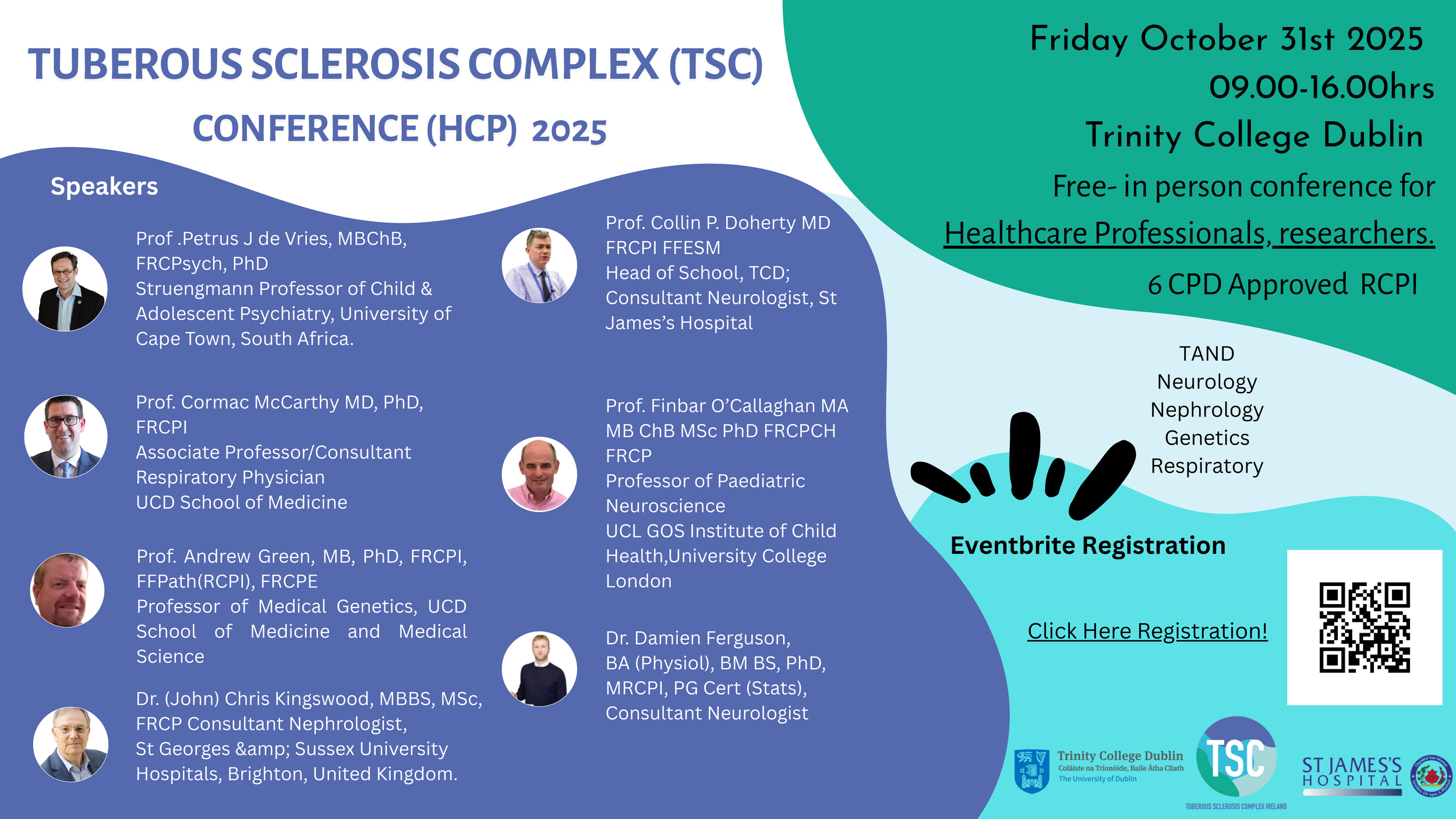 We are delighted to welcome Claire Behan and Ann Connolly two Epilepsy Advanced Nurse Practitioners based in St James’s Hospital and Tallaght University Hospital respectively. Please join us on the night for what promises to be a very informative and interesting session on a topic that is relevant to so many living with TSC.
